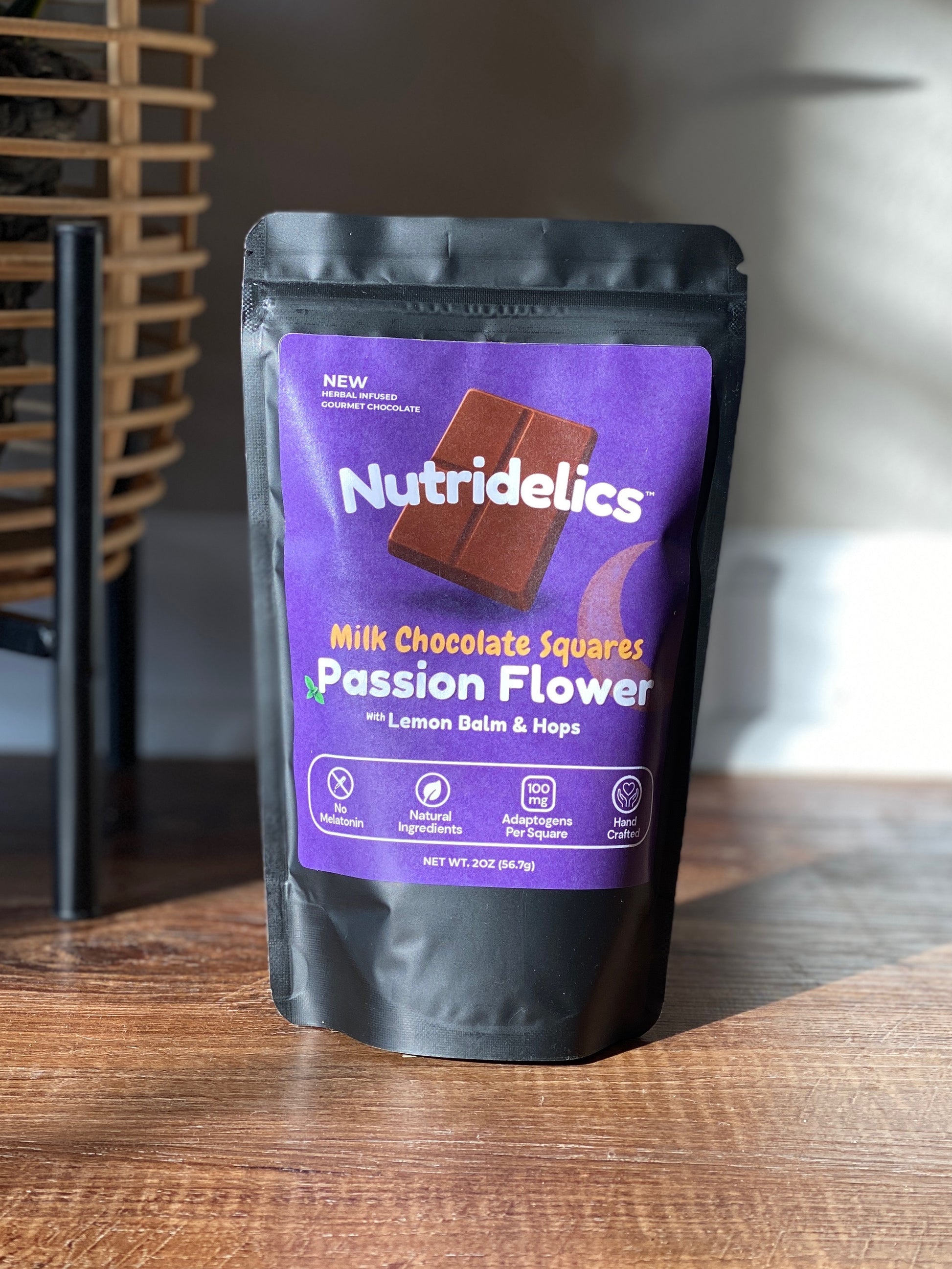 Creamy milk chocolate infused with Passionflower, Lemon Balm, and Hops.
